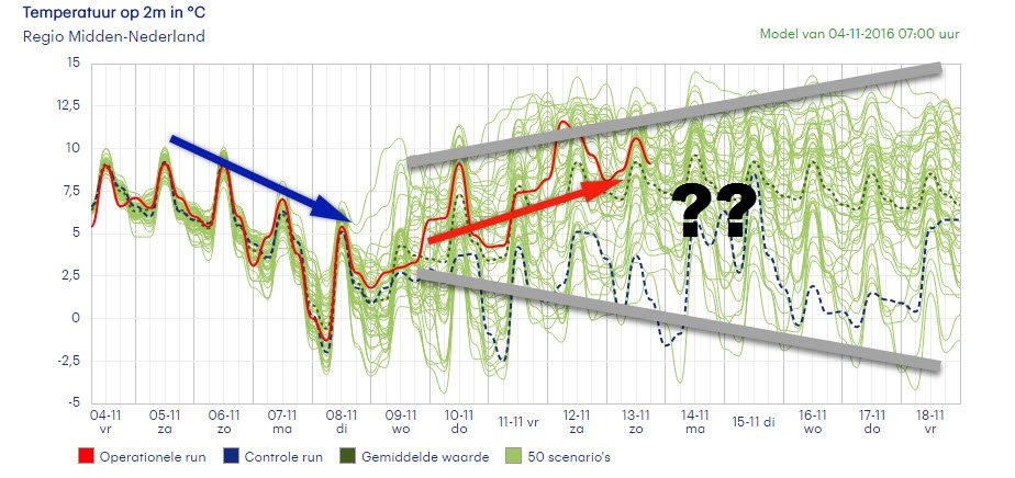 De eerste sneeuw in Europa is gevallen en koudere lucht breidt zich uit en langzaam ook over Nederland. Hoelang de eerste koudere periode voortduurt is echter de vraag. Tot en met dinsdag is het kouder dan normaal voor de tijd van het jaar, maar vanaf donderdag kan het echter alle kanten op.